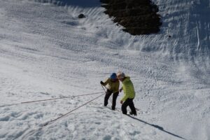 La formación duró dos jornadas completas y tuvo lugar en el camino de ascenso al Collado de Foratón desde el Refugio de Gabardito, donde las laderas del monte Punta de la Cuta ofrecen un escenario seguro y muy polivalente para este tipo de acciones.