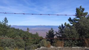 Después de rodear la dolina por la derecha seguimos subiendo por un camino entre carrascas hasta alcanzar el cordal del monte de Zenzano, con cima incluida a la que llegamos para hacernos la foto de rigor y disfrutar de las vistas de todo el valle del Leza hasta Logroño, además de puntos tan dispares en distancia como Pirineos, el Urbión, el Moncayo, San Lorenzo… .