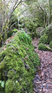 Nos encaminamos desde la misma plaza del pueblo hacia el carrascal donde íbamos a encontrar a la primera dolina u hoya. El camino comienza desde Zenzano bajando, pero después de media hora de senderos embarrados nos introducimos en el carrascal y por un camino menos transitado por las vacas y por lo tanto más seco y con menos barro comenzamos a subir y a quitarnos capas de ropa poco a poco. En otra media hora escasa llegamos a la primera hoya llamada “La Cueva” por los lugareños. La más pequeña de las 3, un sitio espectacular visto tanto desde arriba como abajo en el centro de la hoya a donde bajamos para disfrutar de un microclima húmedo y antiguo que se mantiene igual todo el año protegido por las propias paredes de la hoya.