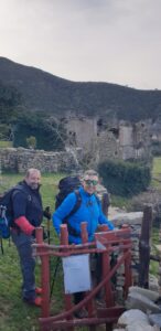 Comenzamos la ruta en la carretera LR-261 en el cruce con San Vicente de Robres donde nos deja el autobús. A las 9:30 de la mañana, a 770 metros de altitud y con temperatura fresca salimos caminando 62 personas y 2 perros. Seguimos la carretera un kilómetro antes de desviarnos a la derecha para cruzar el puente y tomar el camino de acceso a Oliván, esta aldea no tiene acceso ni por carretera ni por pista, está “abandonada” pero a pesar de ello hay alguna casa que parece habitada al menos los fines de semana, está todo bastante cuidado y es el mejor conservado de los tres despoblados. Quizá por eso, porque no hay acceso con vehículos.
