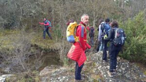 Cruzamos el río Jubera y subimos a la ermita de la virgen de la Torre, que está en bastante mal estado pero en un enclave precioso. Seguimos remontando el solano del rio hasta una pista que remonta el río a unos 100 m, y la seguimos hasta dar vista a Ribalmaguillo, bajamos entre los pinos a cruzar de nuevo el río hacia el umbrío por donde entre pinos y jaras encontramos la loma que nos sube directamente hasta la iglesia de Ribalmaguillo. Esta aldea pertenece al municipio de Munilla, tiene acceso por pista y solo hay un par de casas habitables, el resto son prácticamente ruinas. Allí tomamos un tentenpie y un descanso y continuamos en un sube y baja continuo y por la izquierda del rio entre jaras (estepas para los de la zona) buscando caminos que llevan perdidos 50 años hasta el antiguo puente que da acceso a La Monjia, también perteneciente al municipio de Munilla; de lejos la aldea en peor estado de nuestra ruta. En la Monjia , otro descansillo y una vueltita al pueblo viendo ruinas. Bajamos unos metro para cruzar por ultima vez el rio Jubera, el nacimiento del río está a unos 500m de nuestro paso. Y comenzamos a subir el último repecho que nos queda para llegar a la Peña Rianabar (1247m.) desde la cual veremos ya Santa Marina y el fin del camino. Bajamos a través de la Dehesa del pueblo hasta las praderas que lo rodean y que dan nombre al gentilicio de Santa Marina, “Praeños”. A las 14:30, 5 horas más tarde acaba el camino. Allí en el centro social descansamos, y disfrutamos de unos caparrones de los huertos del pueblo y de la compañía de los Praeños que nos han hecho la comida. A las 18:00 montamos en el autobús y para casa.
