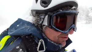 Los esquiadores paran a quitarse las focas mientras los raqueteros continúan el descenso, pero la niebla juega una mala pasada a unos y otros y hace que ambos tomemos direcciones equivocadas ( ¡¡¡algo insólito en esta ilustre Sociedad de Montaña !!! ). Lo más extraño y anecdótico del día, es que ambos grupos, una vez perdidos y mientras retomaban posiciones para reubicarse... sí, coincidieron el mismo tiempo y espacio, y con la ingenua creencia además, que los unos estaban buscando a los otros, mientras ambos pensaban que los otros estaban ya estarían esperando en el bar.
