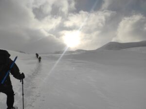 La actividad comenzó huérfana de guía, dado que Jaime y Siridia, que organizaban, no pudieron venir por enfermedad. La nota positiva del fin de semana ha sido la inmejorable meteorología: tras varios días previos nevando, durante el fin de semana reinó el anticiclón y el paisaje era espectacular.