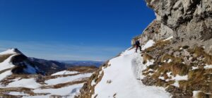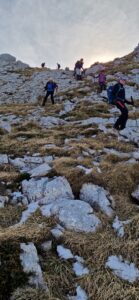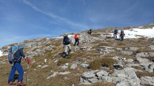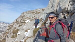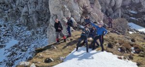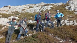 El domingo fue el día para Peña Lusa , con todo el grupo repuesto del día anterior y preparados para lo que viniese por delante. Después de vencer la mayor parte del desnivel atravesando un hayedo, llegamos al collado donde tocaba guardar bastones para comenzar a trepar para encaramarnos al cordal para llegar a la cima. Posteriormente nos tocó destrepar para sortear un cortado y poder continuar la ruta. Durante toda la jornada disfrutamos de las visitas de toda la ruta del dia anterior y también volvimos a ver el mar.