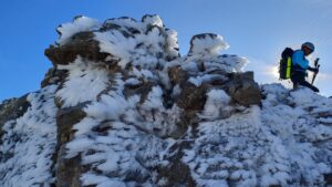 Enseguida llegamos a la cumbre disfrutando de vistas increibles distinguiendo la ciudad de Santander y macizos como Alto Campóo, la Demanda, Gorbea, etc. En la cima también tuvimos la ocasión de charlar con Roke Rubio , un aficionado a los vivacs invernales entre otras cosas.