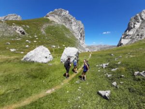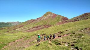 El punto de encuentro de esta segunda actividad post-confinamiento de la Sociedad de Montaña fue el camping de la Selva de Oza, en el valle de Echo. Durante la tarde del viernes 17 de julio allí fuimos llegando los 10 montañeros inscritos en la actividad. Una vez organizados en tiendas de campaña y furgonetas, se organizó la cena y tras un momento de tertulia y organización de las excursiones, nos fuimos al saco.