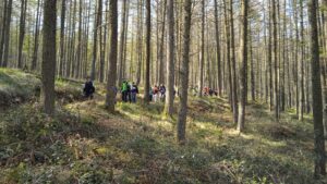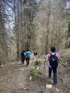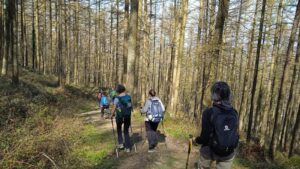 Salimos el grupo de “maduritos” con muy buena participación de gente joven, siguiendo el camino señalado como GR 285 Izarraitz. Marchamos entre verdes campas y preciosos bosques de coníferas, robles y hayas y vamos subiendo por esta cadena montañosa kárstica hacia las cumbres de este modesto macizo que proporcionan unas vistas maravillosas.