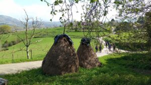 Sin cruzar el puente de Zubizarra prolongamos el paseo por la margen izquierda del rio Urola que va serpenteante resistiéndose a su cercana desembocadura en el mar Cantábrico. Llegamos nosotros tras pasar junto al bonito Palacio Lili del s. XVI al aparcamiento (50m.) en los extrarradios de Zestoa donde nos espera el bus. A partir de ahora comienza otra historia, una historia milagrosa y resucitadora de los cuerpos cansados y exhaustos gracias a las buenas y abundantes viandas de estas tierras y al bálsamo de Fierabrás en el que se convierte el zumo de la manzana o sea la sidra en la generosa y bien llevada Sidrería Ekain, caserío de Irure Txiki en Ibañarrieta, barrio entre Zumaia y Zestoa, TXOTX!!!