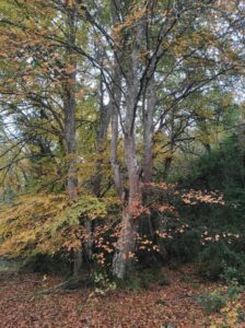 Antes de llegar al pueblo, la senda -en fuerte pendiente- atravesó un muy bonito hayedo donde un montón de hojas tapizaban el camino, que propició alguna que otra caída.